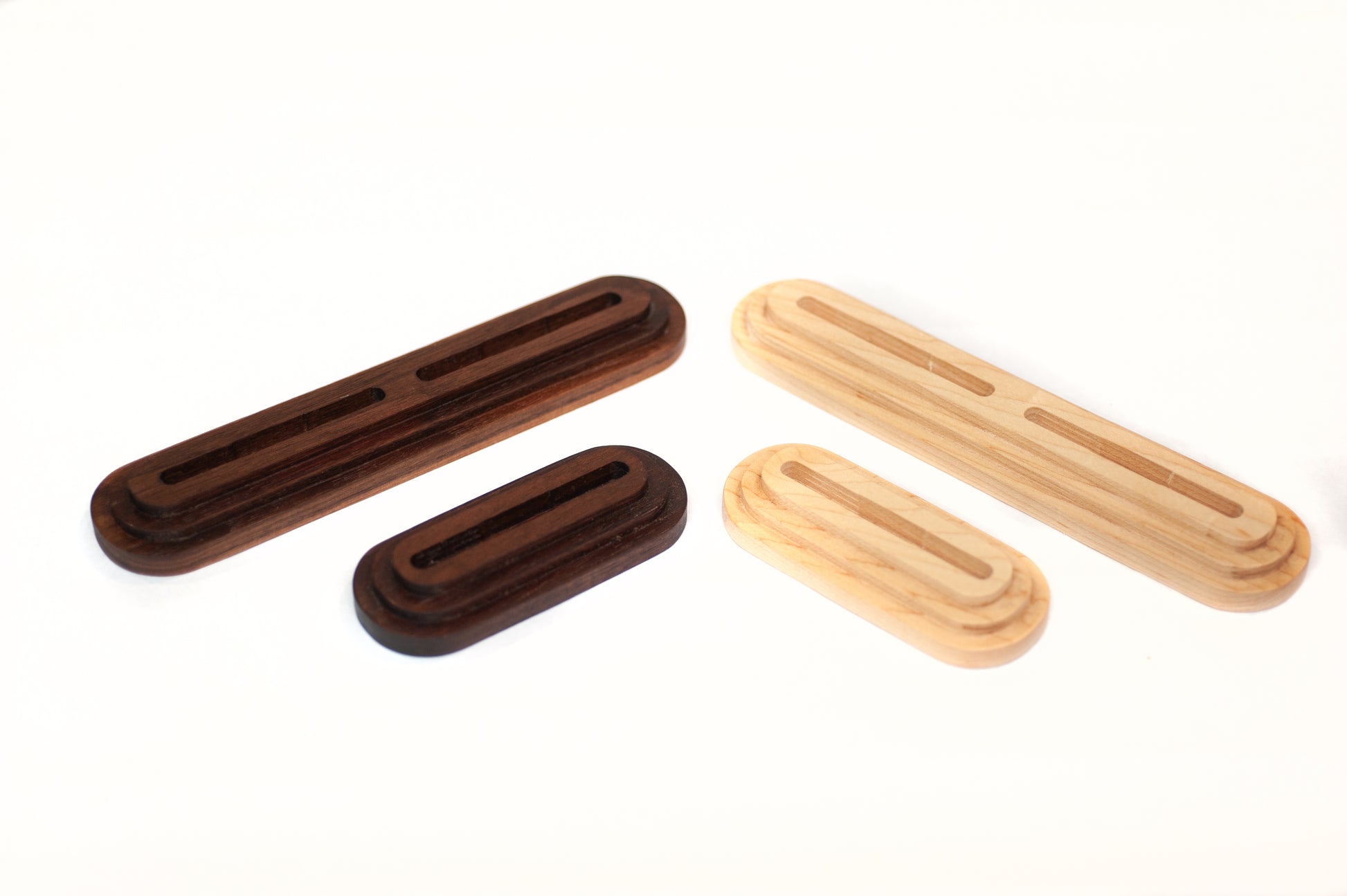Display your favorite trading cards with pride using our low-profile solid wood trading card stands, designed to highlight your collection without distracting from the card itself. Each stand is precision CNC cut to securely fit standard 35pt one-touch magnetic and screw-down card cases, holding your cards upright and stable for display on desks, shelves, or display cases.